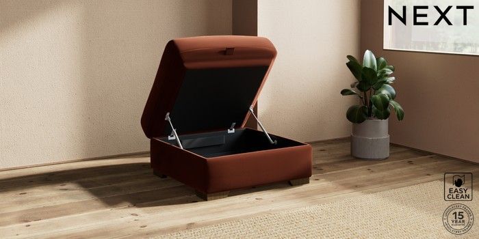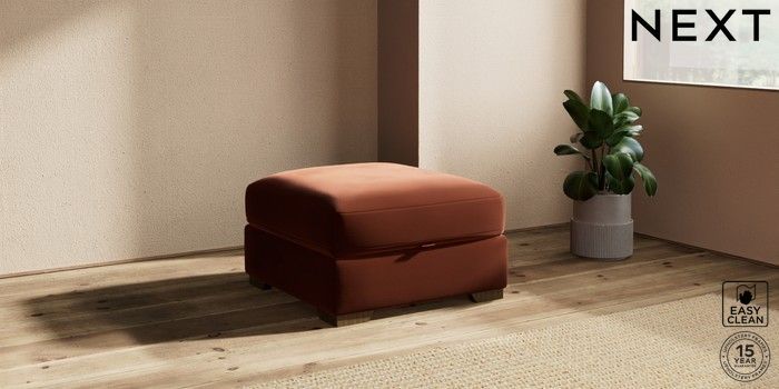 7.2.10 Houghton Deep Sit Storage Footstool Plush Velvet Easy Clean Ginger Orange Square Angle - Mid | Made Click here to use our website with more accessibility support, for example screen readers