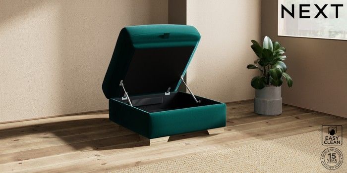7.2.10 Houghton Deep Sit Storage Footstool Plush Velvet Easy Clean Juniper Green Square Angle - Chrome Metal | Made Click here to use our website with more accessibility support, for example screen readers