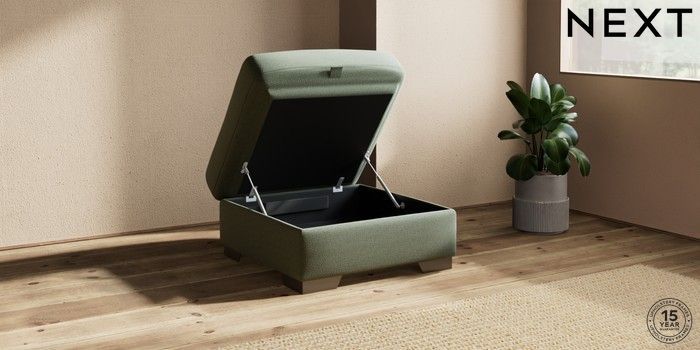 7.2.10 Houghton Deep Sit Storage Footstool Relaxed Linen Look Dark Green Square Angle - Gunmetal | Made Click here to use our website with more accessibility support, for example screen readers