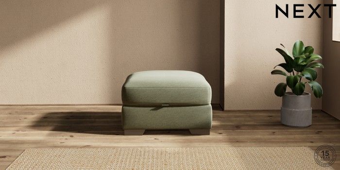 7.2.10 Houghton Deep Sit Storage Footstool Ripple Chenille Mid Moss Green Square Angle - Gunmetal | Made Click here to use our website with more accessibility support, for example screen readers