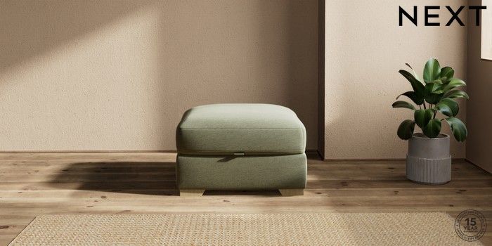 7.2.10 Houghton Deep Sit Storage Footstool Ripple Chenille Mid Moss Green Square Angle - Light | Made Click here to use our website with more accessibility support, for example screen readers