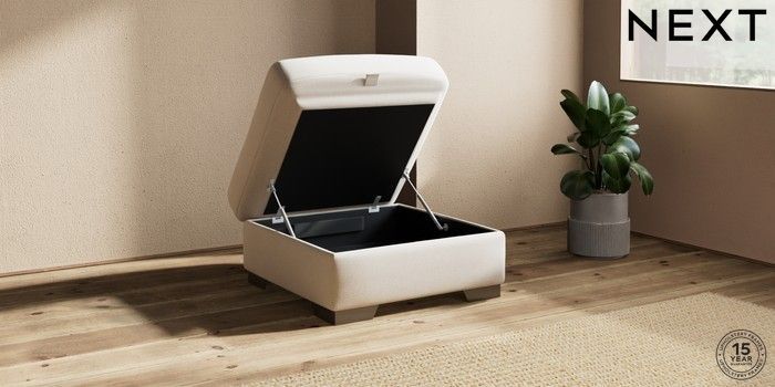 7.2.10 Houghton Deep Sit Storage Footstool Studio Chenille Oyster Square Angle - Gunmetal | Made Click here to use our website with more accessibility support, for example screen readers