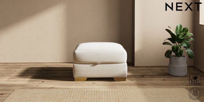 7.2.10 Houghton Deep Sit Storage Footstool Tweedy Blend Easy Clean Oyster Square Angle - Brushed Brass | Made Click here to use our website with more accessibility support, for example screen readers