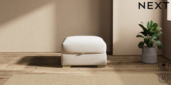 7.2.10 Houghton Deep Sit Storage Footstool Tweedy Blend Easy Clean Oyster Square Angle - Light | Made Click here to use our website with more accessibility support, for example screen readers