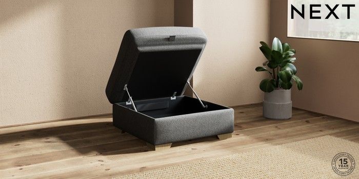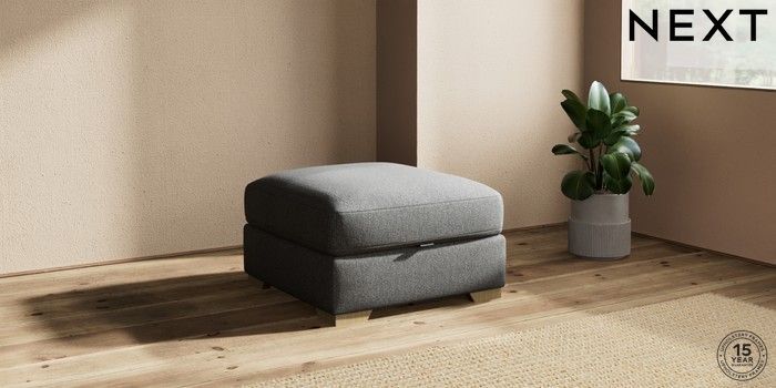 7.2.10 Houghton Deep Sit Storage Footstool Tweedy Chenille Dark Grey Square Angle - Light | Made Click here to use our website with more accessibility support, for example screen readers