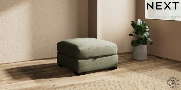7.2.10 Houghton Deep Sit Storage Footstool Tweedy Chenille Mid Moss Green Square Angle - Dark | Made Click here to use our website with more accessibility support, for example screen readers