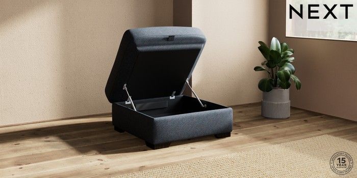 7.2.10 Houghton Deep Sit Storage Footstool Tweedy Chenille Navy Blue Square Angle - Dark | Made Click here to use our website with more accessibility support, for example screen readers