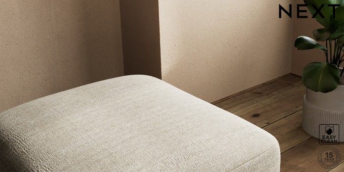 7.2.10 Houghton Deep Sit Storage Footstool Woven Chenille Easy Clean Mid Natural Square Angle - Brushed Brass | Made Click here to use our website with more accessibility support, for example screen readers