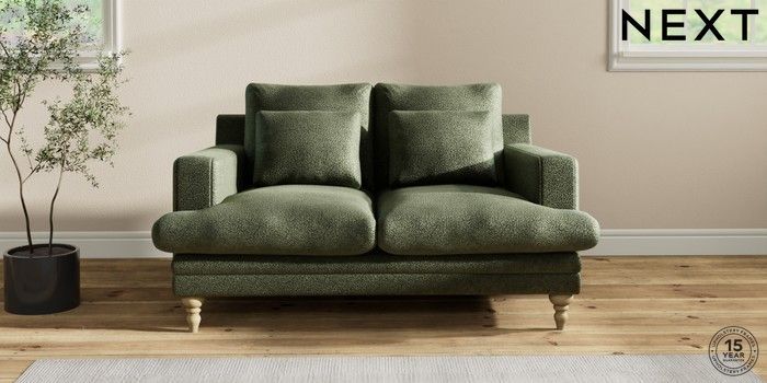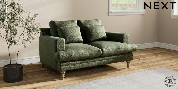 7.2.10 Hutton Deep Relaxed Sit 2 Seater Sofa Boucle Chenille Dark Moss Green Country Turned - Light | Made Click here to use our website with more accessibility support, for example screen readers