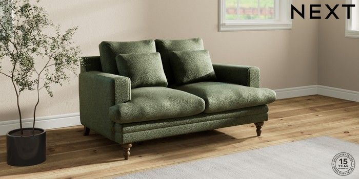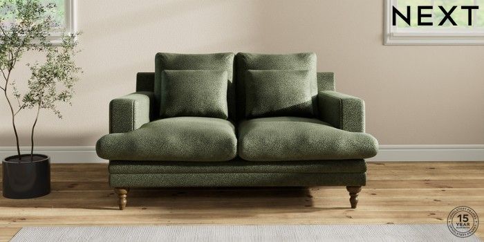 7.2.10 Hutton Deep Relaxed Sit 2 Seater Sofa Boucle Chenille Dark Moss Green Country Turned - Mid | Made Click here to use our website with more accessibility support, for example screen readers