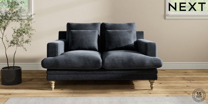 7.2.10 Hutton Deep Relaxed Sit 2 Seater Sofa Boucle Chenille Dark Slate Blue Country Turned - Light | Made Click here to use our website with more accessibility support, for example screen readers