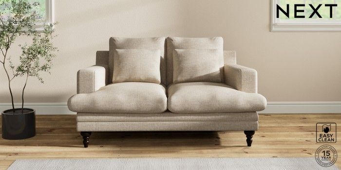 7.2.10 Hutton Deep Relaxed Sit 2 Seater Sofa Boucle Weave Easy Clean Dark Natural Country Turned - Dark | Made Click here to use our website with more accessibility support, for example screen readers