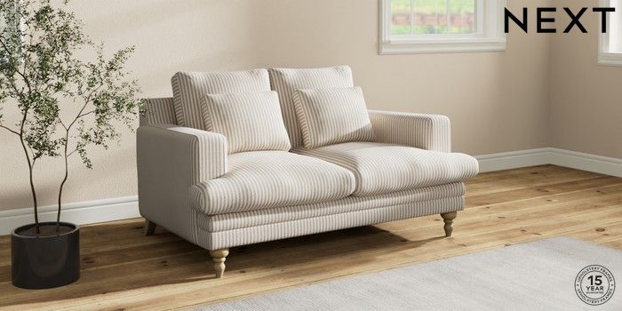 7.2.10 Hutton Deep Relaxed Sit 2 Seater Sofa Chenille Stripe Natural Country Turned - Light | Made Click here to use our website with more accessibility support, for example screen readers