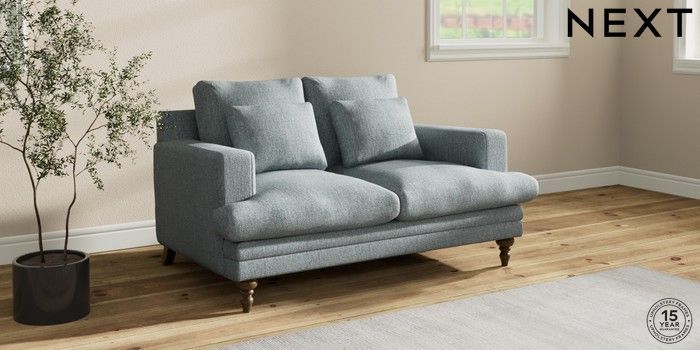 7.2.10 Hutton Deep Relaxed Sit 2 Seater Sofa Chunky Weave Mid Blue Country Turned - Mid | Made Click here to use our website with more accessibility support, for example screen readers