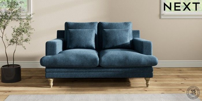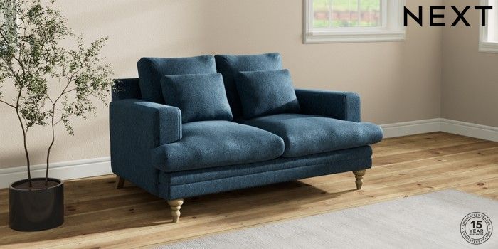 7.2.10 Hutton Deep Relaxed Sit 2 Seater Sofa Cotswold Chenille Dark Blue Country Turned - Light | Made Click here to use our website with more accessibility support, for example screen readers