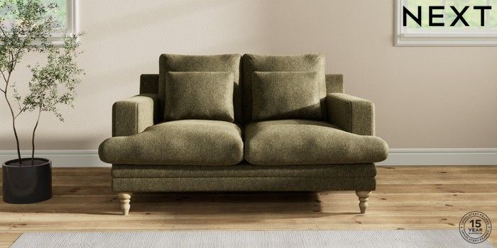 7.2.10 Hutton Deep Relaxed Sit 2 Seater Sofa Cotswold Chenille Dark Green Country Turned - Light | Made Click here to use our website with more accessibility support, for example screen readers