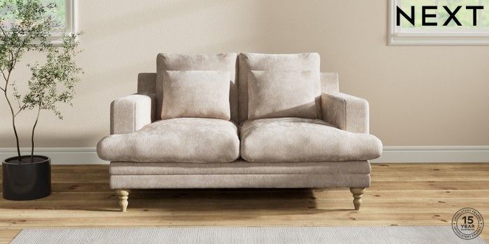 7.2.10 Hutton Deep Relaxed Sit 2 Seater Sofa Distressed Velour Mid Natural Country Turned - Light | Made Click here to use our website with more accessibility support, for example screen readers
