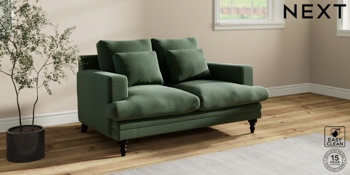7.2.10 Hutton Deep Relaxed Sit 2 Seater Sofa Fine Chenille Easy Clean Mid Khaki Green Country Turned - Dark | Made Click here to use our website with more accessibility support, for example screen readers