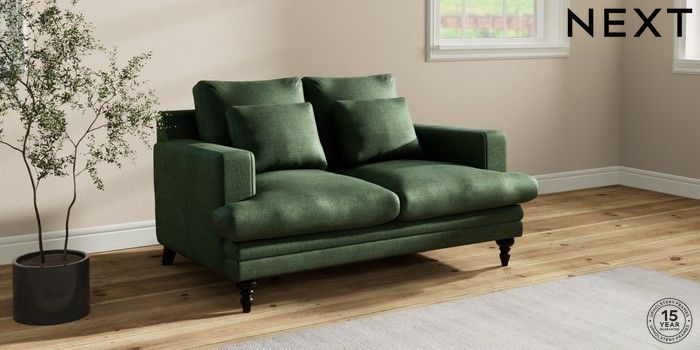 7.2.10 Hutton Deep Relaxed Sit 2 Seater Sofa Luxe Chenille Dark Green Country Turned - Dark | Made Click here to use our website with more accessibility support, for example screen readers