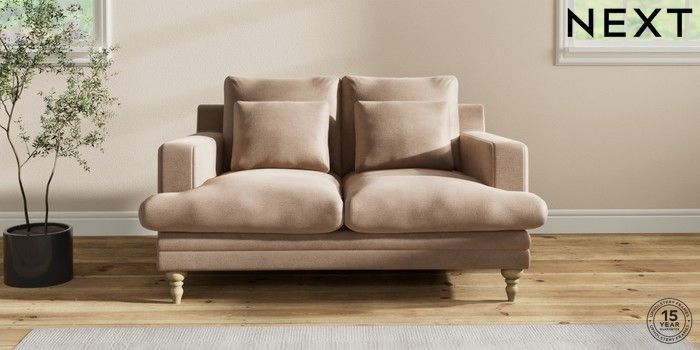 7.2.10 Hutton Deep Relaxed Sit 2 Seater Sofa Luxe Chenille Mid Natural Country Turned - Light | Made Click here to use our website with more accessibility support, for example screen readers