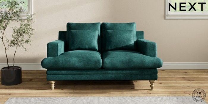 7.2.10 Hutton Deep Relaxed Sit 2 Seater Sofa Plush Chenille Dark Teal Green Country Turned - Light | Made Click here to use our website with more accessibility support, for example screen readers