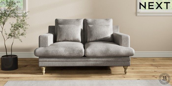 7.2.10 Hutton Deep Relaxed Sit 2 Seater Sofa Plush Chenille Light Grey Country Turned - Light | Made Click here to use our website with more accessibility support, for example screen readers