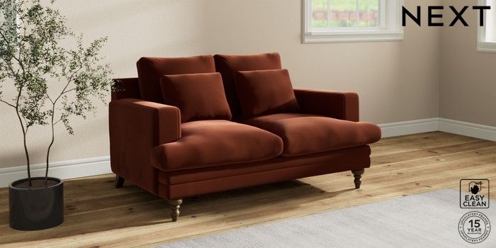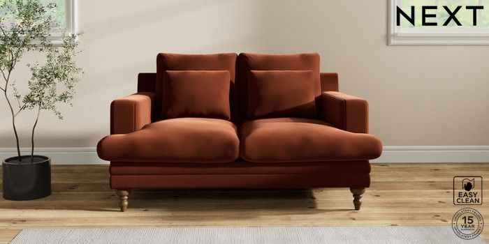 7.2.10 Hutton Deep Relaxed Sit 2 Seater Sofa Plush Velvet Easy Clean Ginger Orange Country Turned - Mid | Made Click here to use our website with more accessibility support, for example screen readers