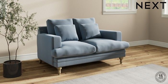 7.2.10 Hutton Deep Relaxed Sit 2 Seater Sofa Relaxed Linen Look Mid Blue Country Turned - Light | Made Click here to use our website with more accessibility support, for example screen readers