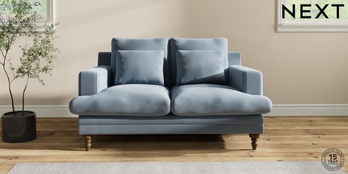 7.2.10 Hutton Deep Relaxed Sit 2 Seater Sofa Relaxed Linen Look Mid Blue Country Turned - Mid | Made Click here to use our website with more accessibility support, for example screen readers