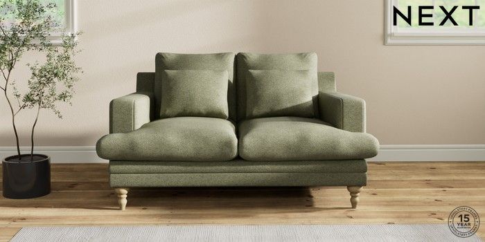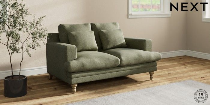 7.2.10 Hutton Deep Relaxed Sit 2 Seater Sofa Tweedy Chenille Mid Moss Green Country Turned - Light | Made Click here to use our website with more accessibility support, for example screen readers
