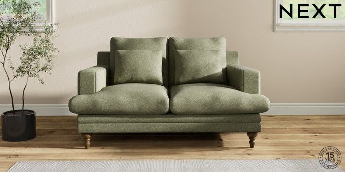 7.2.10 Hutton Deep Relaxed Sit 2 Seater Sofa Tweedy Chenille Mid Moss Green Country Turned - Mid | Made Click here to use our website with more accessibility support, for example screen readers