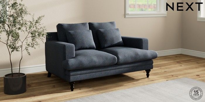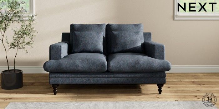 7.2.10 Hutton Deep Relaxed Sit 2 Seater Sofa Tweedy Chenille Navy Blue Country Turned - Dark | Made Click here to use our website with more accessibility support, for example screen readers