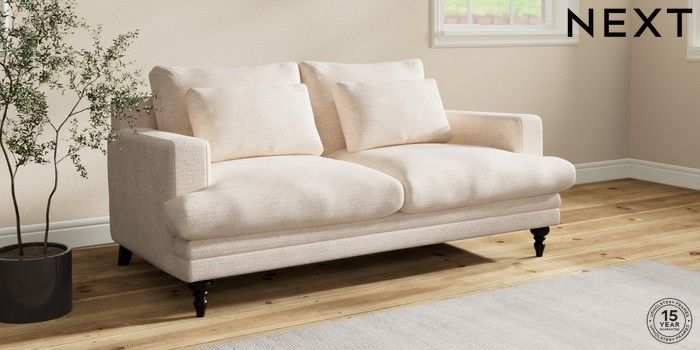 7.2.10 Hutton Deep Relaxed Sit 3 Seater Small Sofa Boucle Chenille Oyster Country Turned - Dark | Made Click here to use our website with more accessibility support, for example screen readers