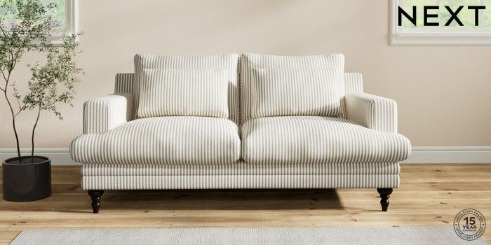 7.2.10 Hutton Deep Relaxed Sit 3 Seater Small Sofa Chenille Stripe Moss Green Country Turned - Dark | Made Click here to use our website with more accessibility support, for example screen readers