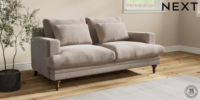 7.2.10 Hutton Deep Relaxed Sit 3 Seater Small Sofa Chunky Chenille Light Dove Country Turned - Mid | Made Click here to use our website with more accessibility support, for example screen readers