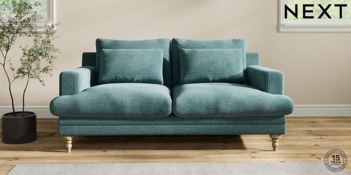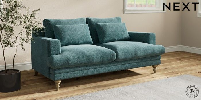 7.2.10 Hutton Deep Relaxed Sit 3 Seater Small Sofa Chunky Chenille Mid Teal Green Country Turned - Light | Made Click here to use our website with more accessibility support, for example screen readers
