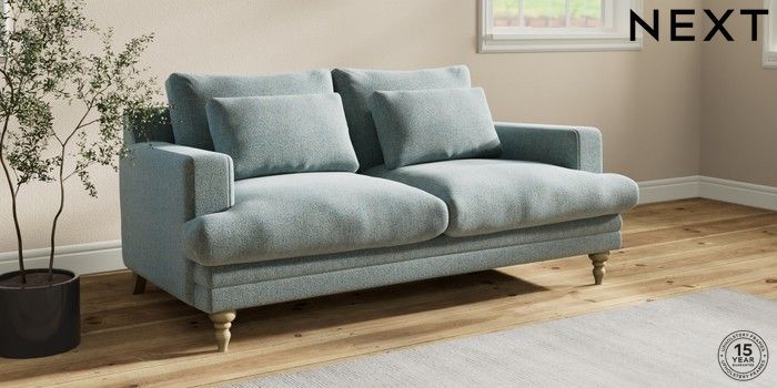 7.2.10 Hutton Deep Relaxed Sit 3 Seater Small Sofa Chunky Marl Mid Blue Country Turned - Light | Made Click here to use our website with more accessibility support, for example screen readers