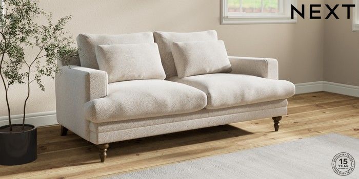 7.2.10 Hutton Deep Relaxed Sit 3 Seater Small Sofa Chunky Marl Oyster Country Turned - Mid | Made Click here to use our website with more accessibility support, for example screen readers