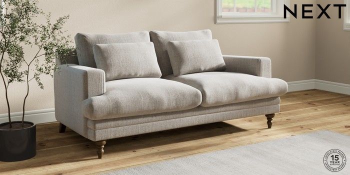 7.2.10 Hutton Deep Relaxed Sit 3 Seater Small Sofa Chunky Weave Dove Grey Country Turned - Mid | Made Click here to use our website with more accessibility support, for example screen readers