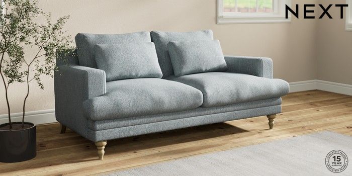 7.2.10 Hutton Deep Relaxed Sit 3 Seater Small Sofa Chunky Weave Mid Blue Country Turned - Light | Made Click here to use our website with more accessibility support, for example screen readers