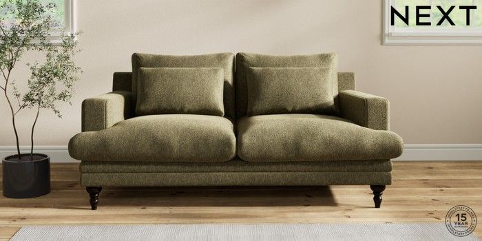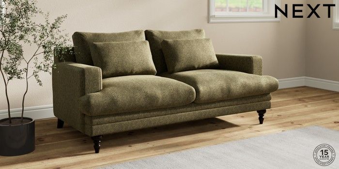 7.2.10 Hutton Deep Relaxed Sit 3 Seater Small Sofa Cotswold Chenille Dark Green Country Turned - Dark | Made Click here to use our website with more accessibility support, for example screen readers