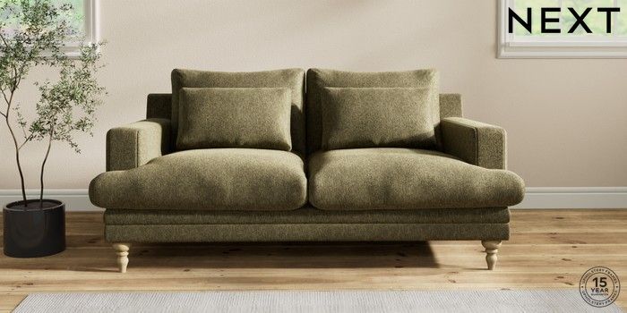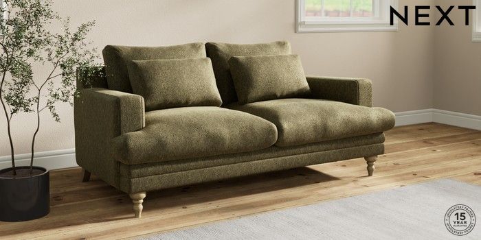 7.2.10 Hutton Deep Relaxed Sit 3 Seater Small Sofa Cotswold Chenille Dark Green Country Turned - Light | Made Click here to use our website with more accessibility support, for example screen readers