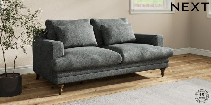 7.2.10 Hutton Deep Relaxed Sit 3 Seater Small Sofa Cotswold Chenille Dark Grey Country Turned - Mid | Made Click here to use our website with more accessibility support, for example screen readers