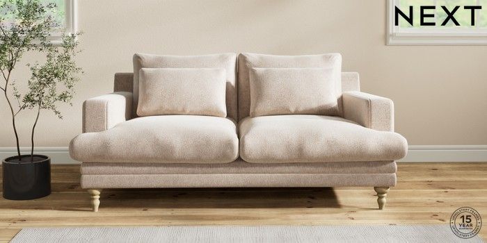 7.2.10 Hutton Deep Relaxed Sit 3 Seater Small Sofa Cotswold Chenille Light Natural Country Turned - Light | Made Click here to use our website with more accessibility support, for example screen readers