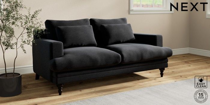 7.2.10 Hutton Deep Relaxed Sit 3 Seater Small Sofa Fine Chenille Easy Clean Black Country Turned - Dark | Made Click here to use our website with more accessibility support, for example screen readers