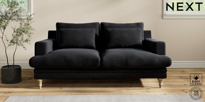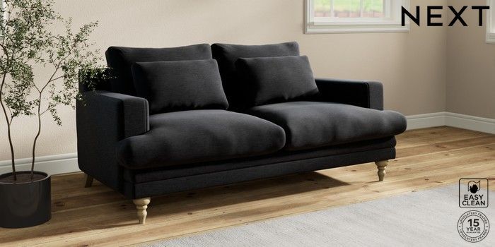 7.2.10 Hutton Deep Relaxed Sit 3 Seater Small Sofa Fine Chenille Easy Clean Black Country Turned - Light | Made Click here to use our website with more accessibility support, for example screen readers