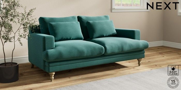 7.2.10 Hutton Deep Relaxed Sit 3 Seater Small Sofa Fine Chenille Easy Clean Dark Juniper Green Country Turned - Light | Made Click here to use our website with more accessibility support, for example screen readers