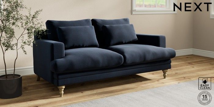 7.2.10 Hutton Deep Relaxed Sit 3 Seater Small Sofa Fine Chenille Easy Clean Dark Navy Blue Country Turned - Light | Made Click here to use our website with more accessibility support, for example screen readers
