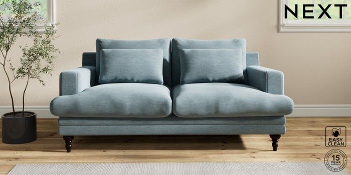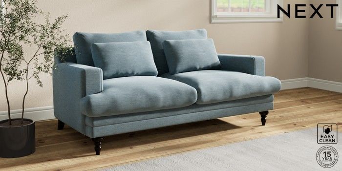 7.2.10 Hutton Deep Relaxed Sit 3 Seater Small Sofa Fine Chenille Easy Clean Mid Blue Country Turned - Dark | Made Click here to use our website with more accessibility support, for example screen readers