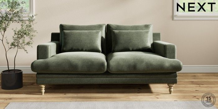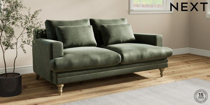 7.2.10 Hutton Deep Relaxed Sit 3 Seater Small Sofa Luxe Chenille Mid Green Country Turned - Light | Made Click here to use our website with more accessibility support, for example screen readers